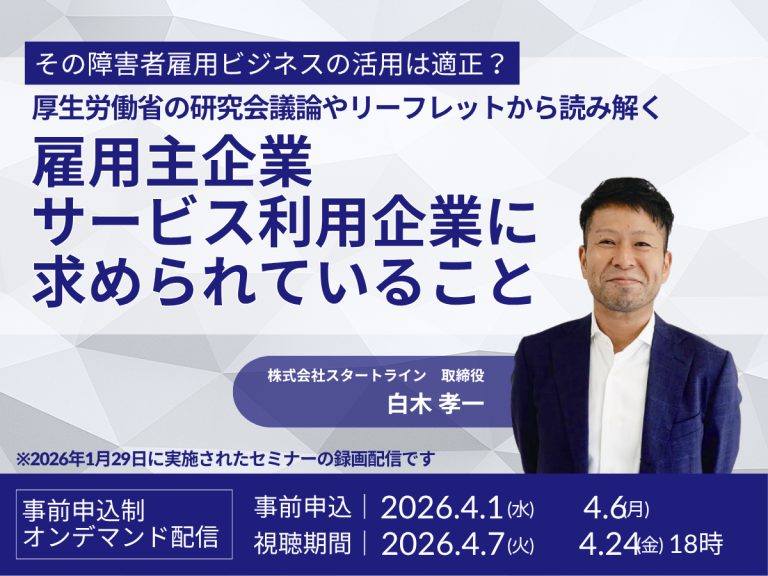 【4/7(火)14:00~】『2026年度版』障害者雇用のイロハ ~2.7%への…