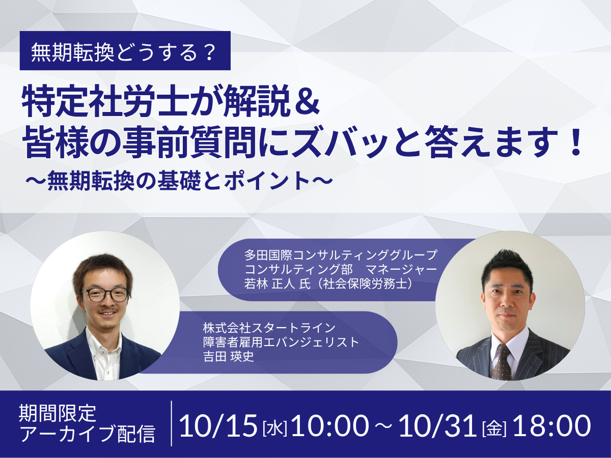 ※大好評だった【 9月25日12時~『無期転換どうする?』特定社労士が解説&皆様の事前質問にズバッと答えます!~無期転換の基礎とポイント~】のアーカイブ配信となります。