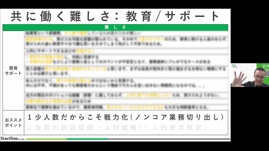 「課題を見える化し、対話を重ねるマネジメント3ステップは、障がい者雇用だけでなく、その他の採用活動や通常のチーム運営にも活かせると感じた」