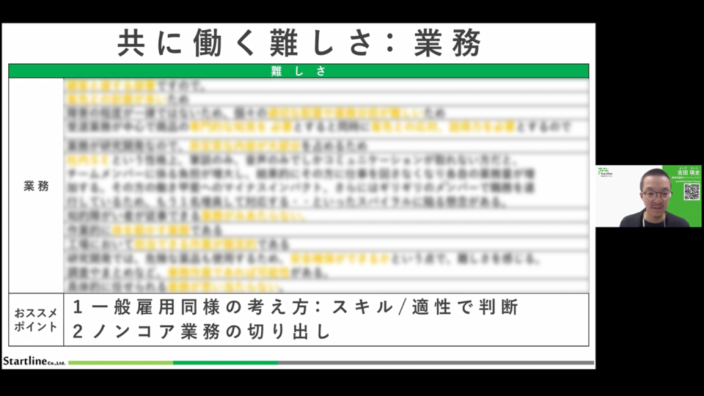 この手法は障害者雇用に限らず、通常のチームマネジメントにも転用できるため、参加者の関心が特に高いポイントとなりました。