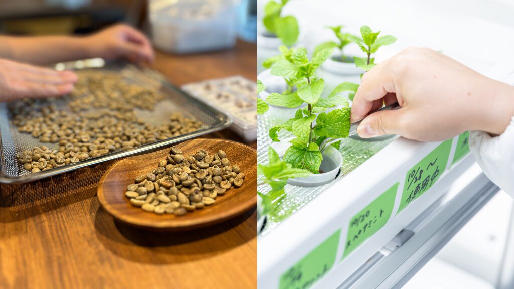 「コーヒー・屋内農園・オフィス」