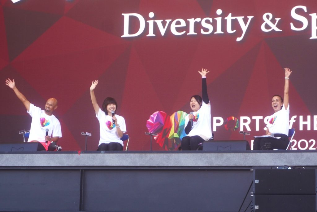 髙室は、シドニーオリンピック女子マラソン金メダリストの高橋尚子さん、リオパラリンピック走り幅跳び銀メダリストの山本篤さんらとともにトークショーに登壇し、「ダイバーシティ&スポーツ」をテーマに語り合いました。