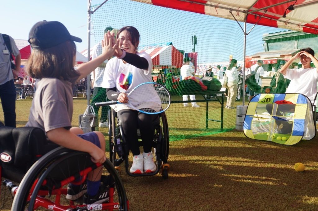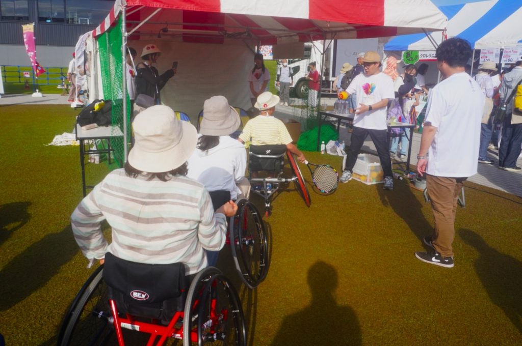 車いすパラテニスプレイヤー髙室冴綺による体験ブース