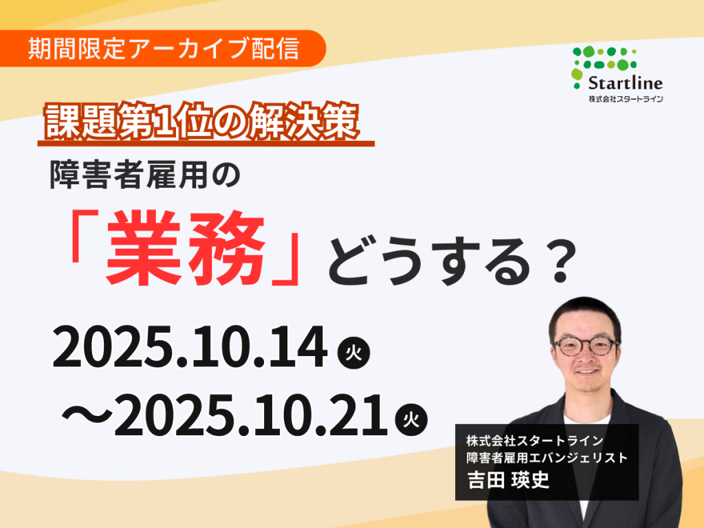 ※大好評だった【 『課題第1位の解決策』 障害者雇用の「業務」どうする?】のアーカイブ配信となります。