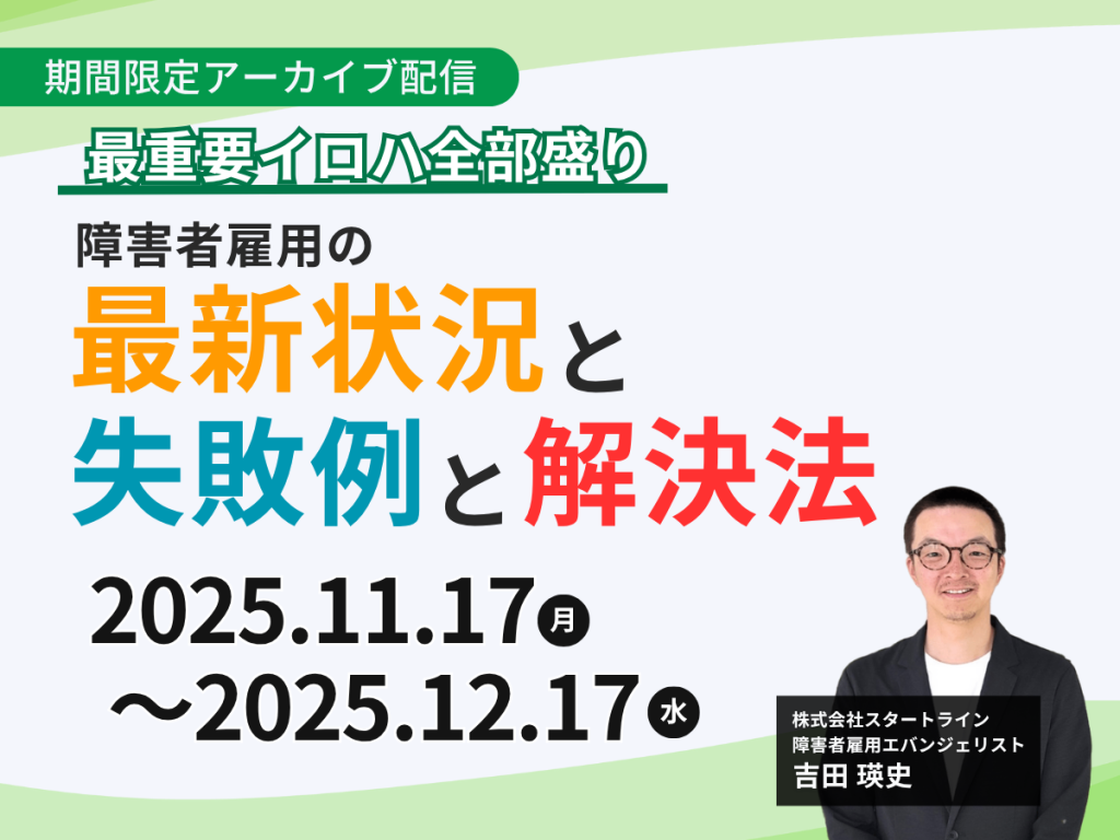 ※大好評だった【 障害者雇用の[最新状況]と[失敗例]と[解決法]~最重要イロハ全部盛り~】のアーカイブ配信となります。