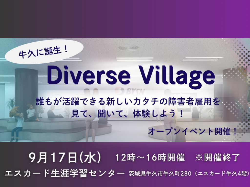 新しいカタチの障害者雇用施設「Diverse Village(ダイバースビレッジ)」が牛久に誕生します!